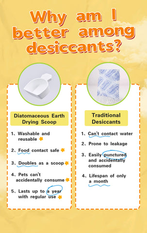 This innovative food scoop is crafted from a blend of diatomaceous earth and premium materials, offering superior moisture-wicking properties. It helps regulate humidity in your cat's food container, keeping food fresh and free from clumps.