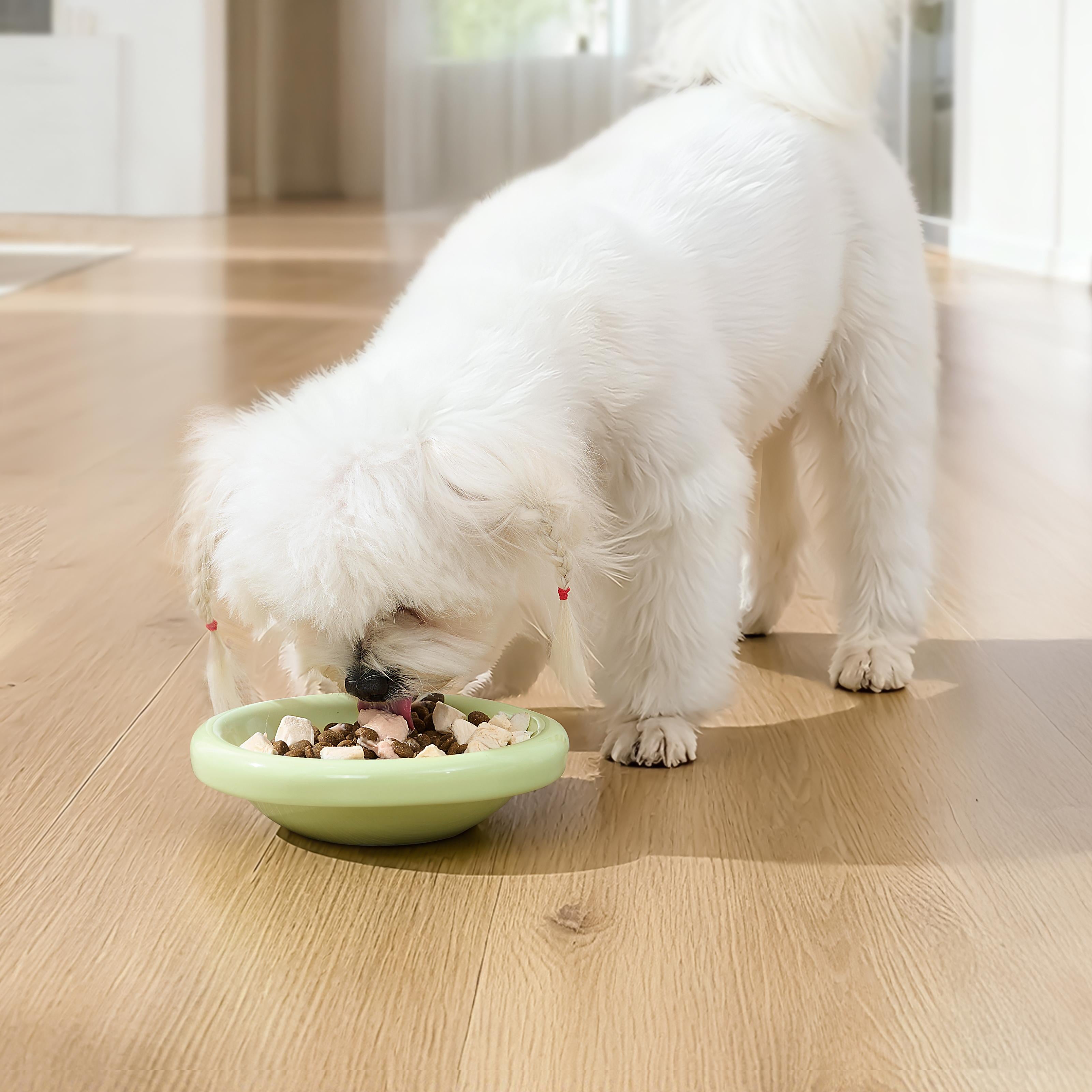 The smooth glazed finish prevents food residue and bacteria build-up. Simply rinse or pop it in the dishwasher for effortless cleaning — a hygienic choice for busy cat parents.
